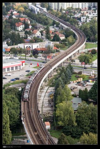 8174: Ein V1 nach Siebenhirten hat soeben die Brücke über die