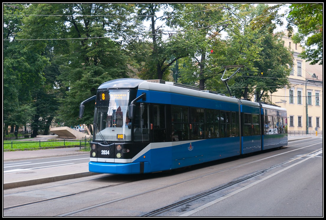 blauen Straßenbahnen in Krakau schon unaufhaltsam ihre Runden. Vom Hotel