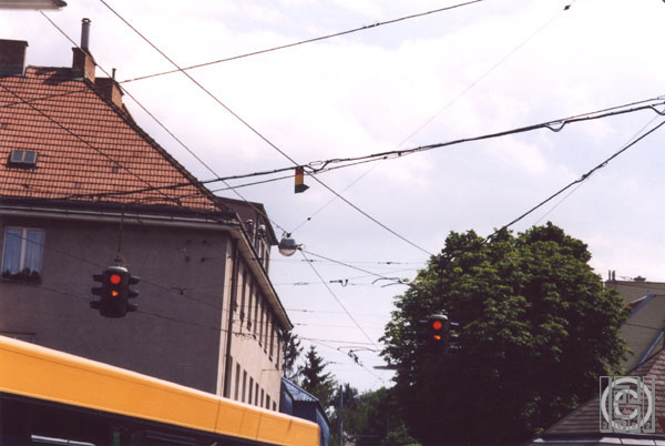 abbiegt. Es gilt, obwohl es auf dem Abspanndraht hängt, auch für Autofahrer!