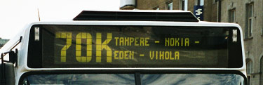 Bild 2 zeigt einen Autobus in Tampere. Das Zielschild ist übrigens keine