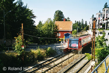 Bild 1 zeigt einen neueren Zweisystemwagen bei der Haltestelle Holmenkollen