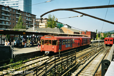 Auf Bild 2 ist ein älterer Zweisystemwagen in der Haltestelle Majorstuen