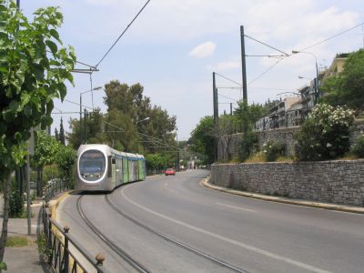 Fahrweise der Athener Busfahrer gewohnt ist, die Straßenbahn als langsam