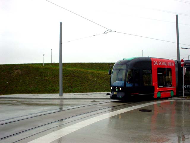 Auf Bild11 befindet sich Wagen 652 gerade auf er Rampe zwischen den HST "Brauhaus" und "Wagramer Weg", wobei meines Erachtens nach vor allem erstere mehr als entbehrlich wäre. An dieser Stelle befand sich einst die Verzweigungsweiche der alten Schleife.