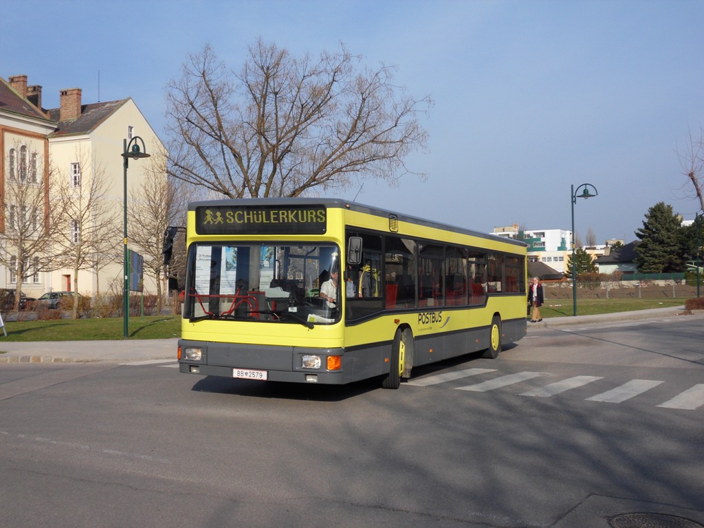 Wagen BB 2579 hatte Ende des Vorjahres einen Unfall und glänzt rundum neu lackiert am 23.3.10 als Schulbus in Biedermannsdorf.