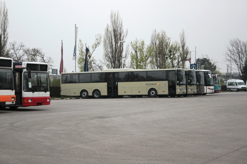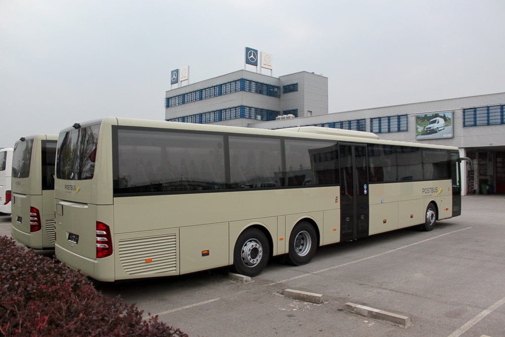 sie zeigen 2 fabriksneue Integro 15m für Postbus, bereit für die Übergabe im
