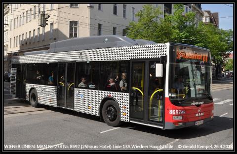 sowie der Wagen 8692 im "extravaganten" Design für das "25h Hotel" in Wien. Wenn man diesen Bus