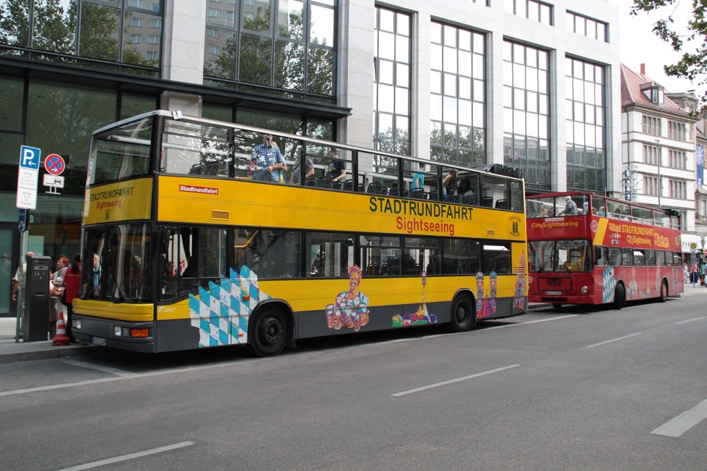 auch MAN UNVI unterwegs, mit offenem Verdeck. Trotz Oberleitung von Straßenbahnen (welche hoch genug hängen)