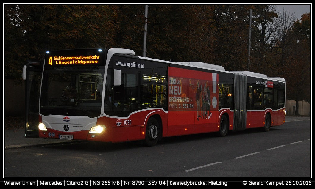 - 8746 an der Kreuzung Schönbrunner Schloßstraße#Grünbergstraße. Es ist ein "Spetter-Bus" mit richtigem Liniensignal