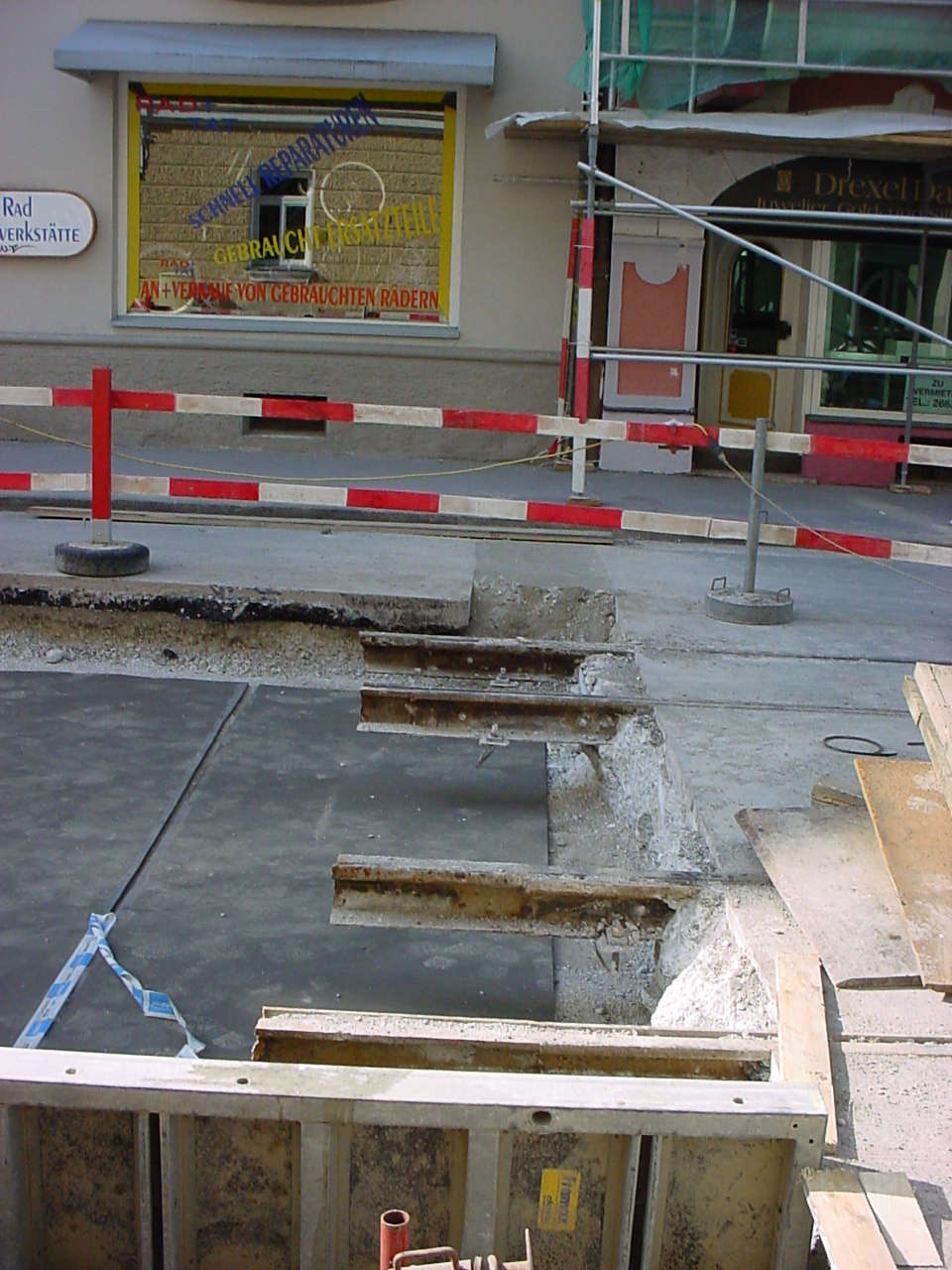 (westliches Gleis, das östliche ist bereits asphaltiert) übrig zu bleiben.