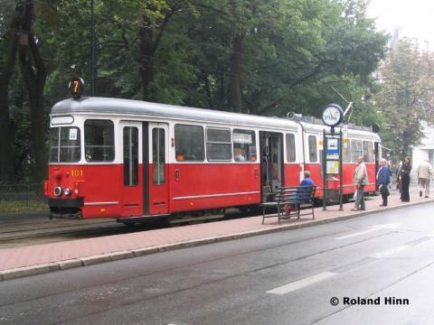 TW 101 (ex E1 4488) in der Haltestelle Filharmonia.