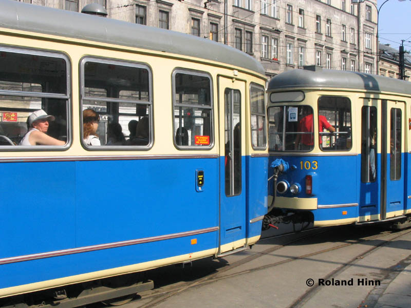 TW 103 (ex 4655) + BW 563 (ex 1255) in der Haltestelle Stradom.