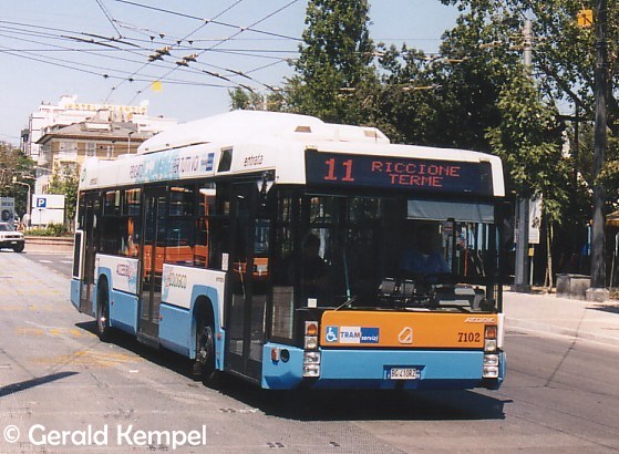 In Rimini fahren 2 MAN/Autodromo Niederflur LPG (!) Busse,