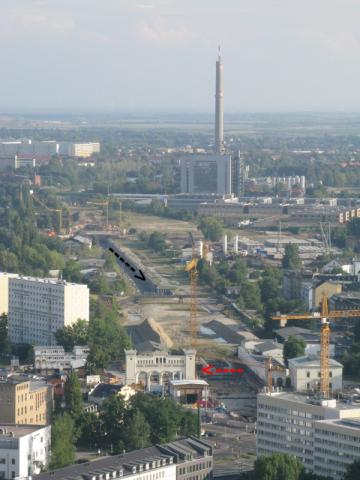 Auf dem Foto von der Terrasse des MDR-Turms kann man das schön erkennen: