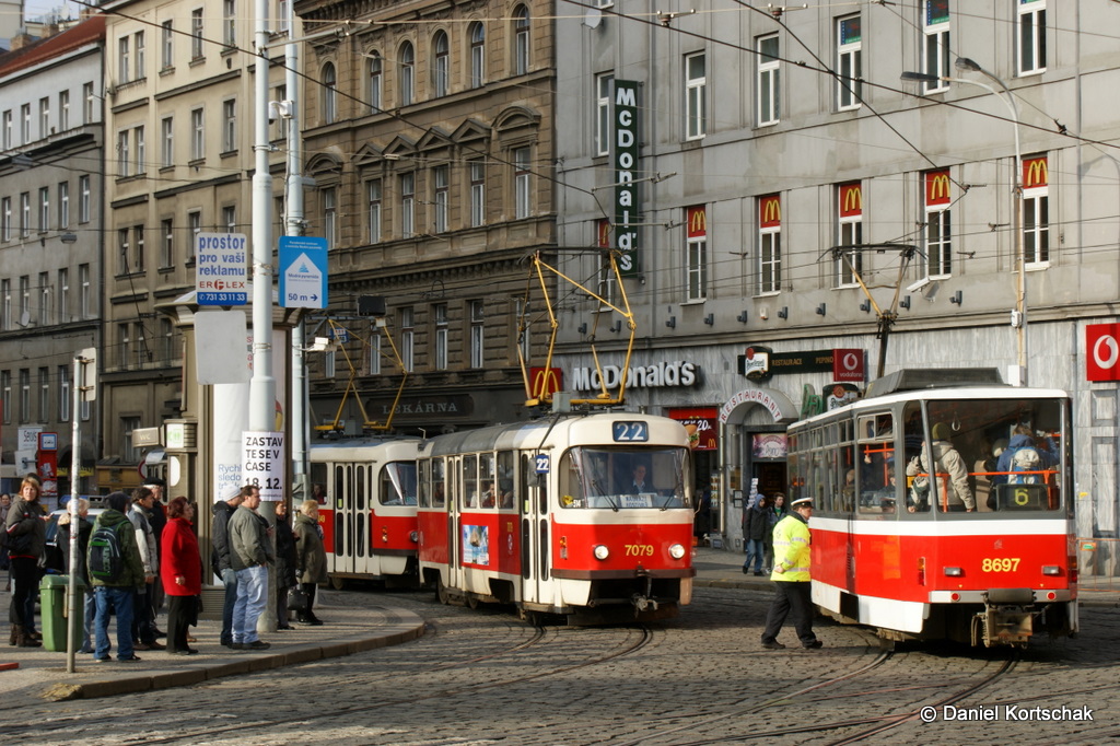 behindert waren. Stadtauswärts wurden die Züge über Bruselská -