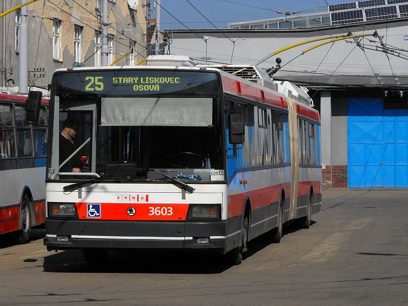 # 3603 ist ein Skoda 22Tr von 2003. Das Bild gelang am Betriebshof Husovice