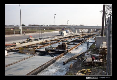 Schienen, in der Unterführung unter U- und Eisenbahn kann man bereits
