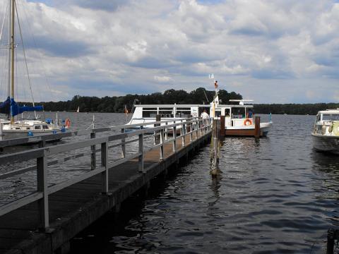 Fähre IV am Anleger in Schmöckwitz und nach der Abfahrt auf dem Weg nach