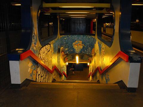 # Die Treppe von Slo nach Slu in der Mitte des Bahnhofs.