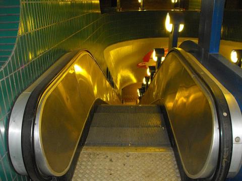 gehören. Die planmäßig aufwärts führende Rolltreppe ist wegen schwieriger
