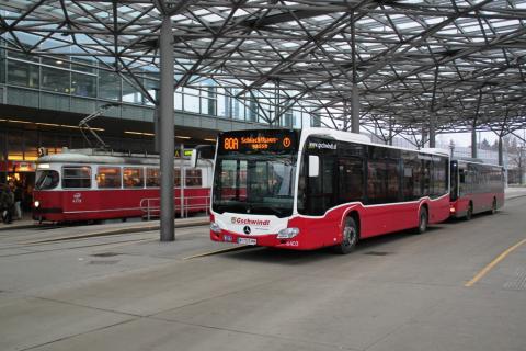 Die ersten Normalbusse, im neuen Wiener Liniendesign fahren am 80A unter Gschwindl.