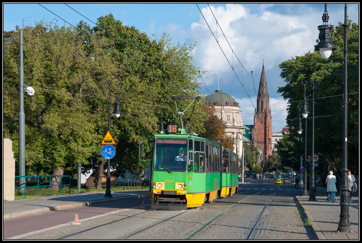 Vergleich zum sonstigen Posener Wagenpark. Garnitur 310+311 am 21.09.2017.