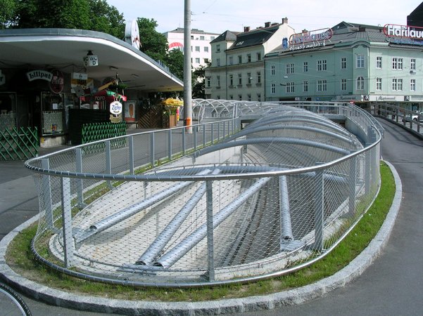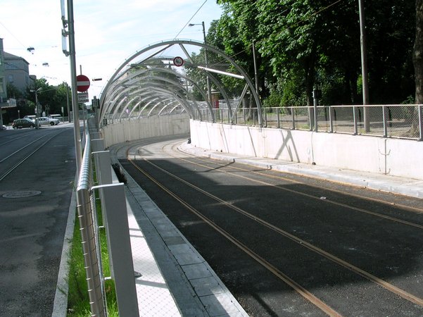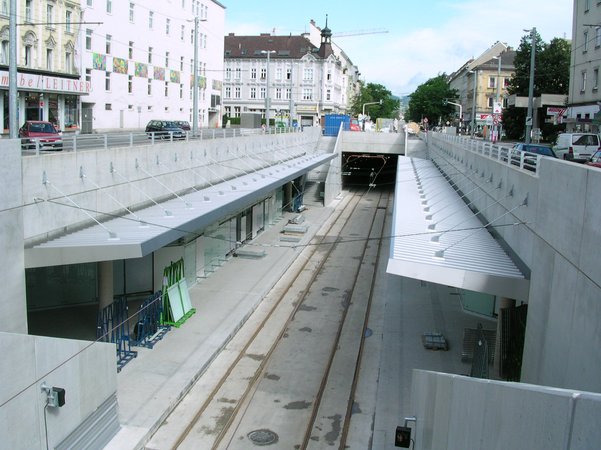 Die Einfahrt in den Tunnel bei der Hst Blumauerplatz.