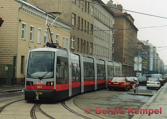 ULB B Nr. 602 mit Meßeinrichtung beim Bahnhof Favoriten am 27.11.1998. (siehe Diskussionsliste)