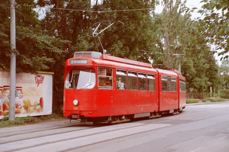 Bild 1 zeigt Wagen 508 beim Ausfahren aus der Schleife Wetzelsdorf.