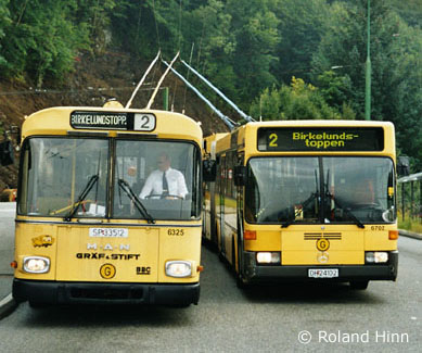 be02: Die Gräf&Stift-O-Busse 6332 und 6326 begegnen sich auf dem Kalfarveien