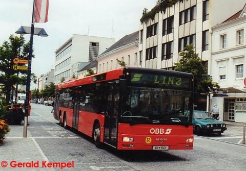Das Foto vom Juli 2001 zeigt den BahnBus