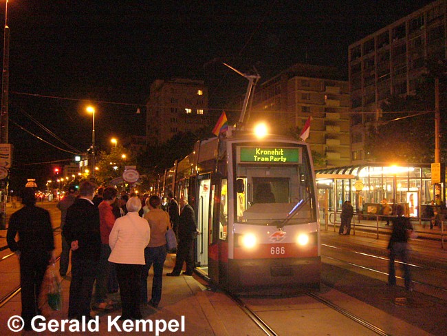 Die Partytrams hielten bei der Oper, am Rathausplatz, sowie am
