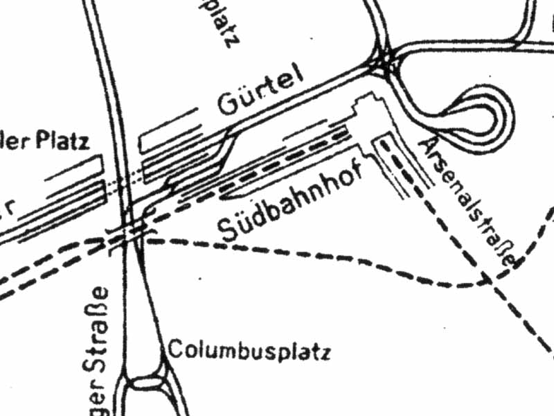 um den Südtiroler Platz mit der ursprünglichen Gleislage nach Erbauung der