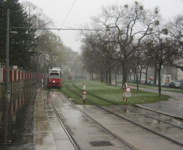 Beim Krankenhaus Hietzing wurde mir das Schneetreiben dann zu bunt und ich