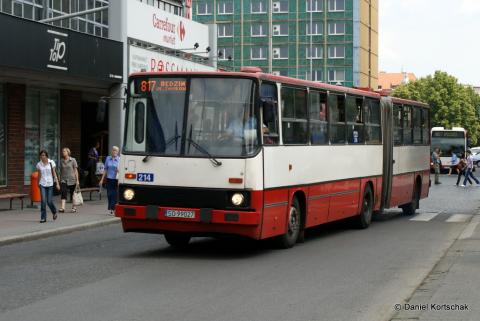Verkehrsbetriebes PKM rot-weiß lackiert, die Wagen sind auch in Katowice