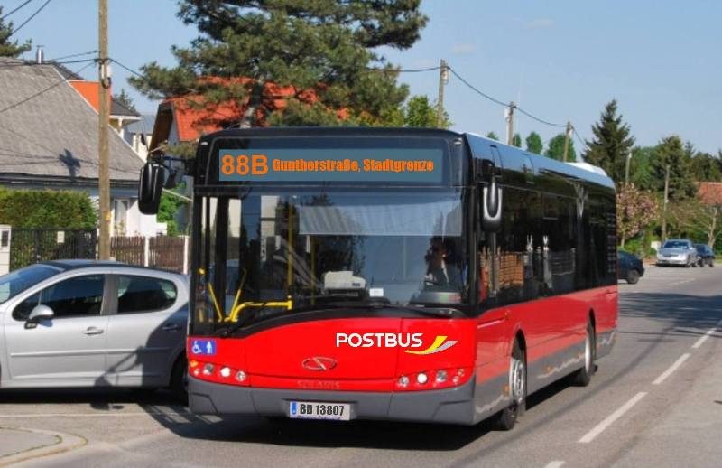 und eine annähernd, vielleicht bald reale Fotomontage für die von Postbus gewonnenen Linien 88A & 88B produziert.