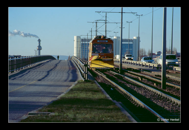 11: Der Schneepflug 6450 schaut sich schon mal die Strecke an, auf der