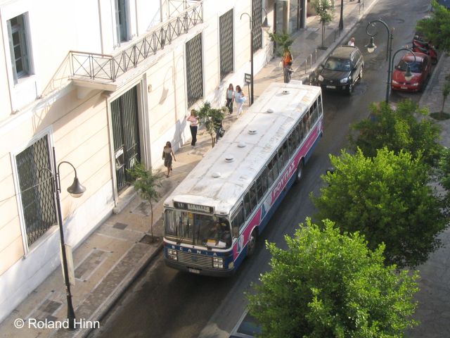 Ein Mercedes O305 mit griechischem Aufbau und ein Scania.