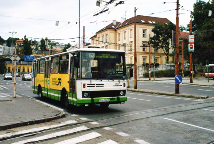 Wagen 1707, der nahe der Haltestelle Kooperativa unweit des Hauptbahnhofes