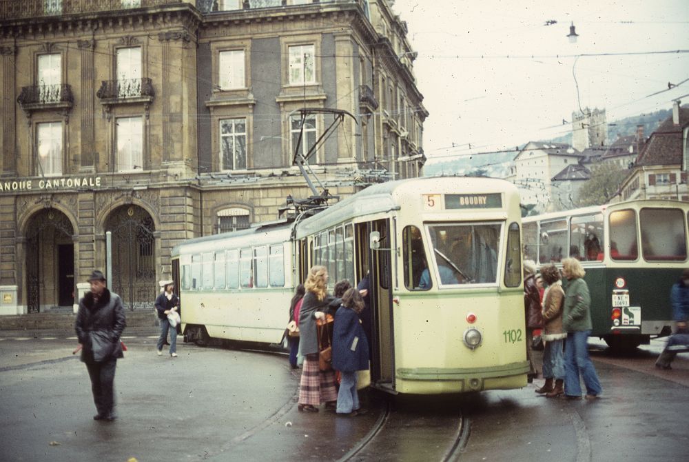 Die heute noch bestehende Linie 5 verkehrte mit den TW 1101-1104. Diese wurden 1942 von Breda für die Genueser Straßenbahn gebaut, knapp vor deren Einstellung kaufte Neuchâtel sie, um die Linie 5 ab 1967 mit modernem Wagenmaterial auszustatten. Die Verwandschaft mit dem Innsbrucker TW 60 ist ja augenscheinlich, auch Belgrad hatte solche TW des italienischen Herstellers.