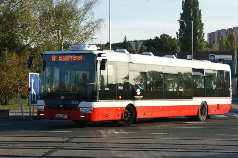 Die Aufnahmen zeigen zwei SOR NB 12 bei der U-Bahn-Station Strasnicka
