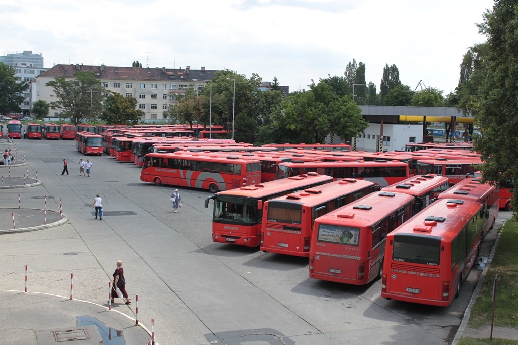 Bussen am Busbahnhof Bratislava im Juni 2012