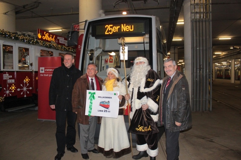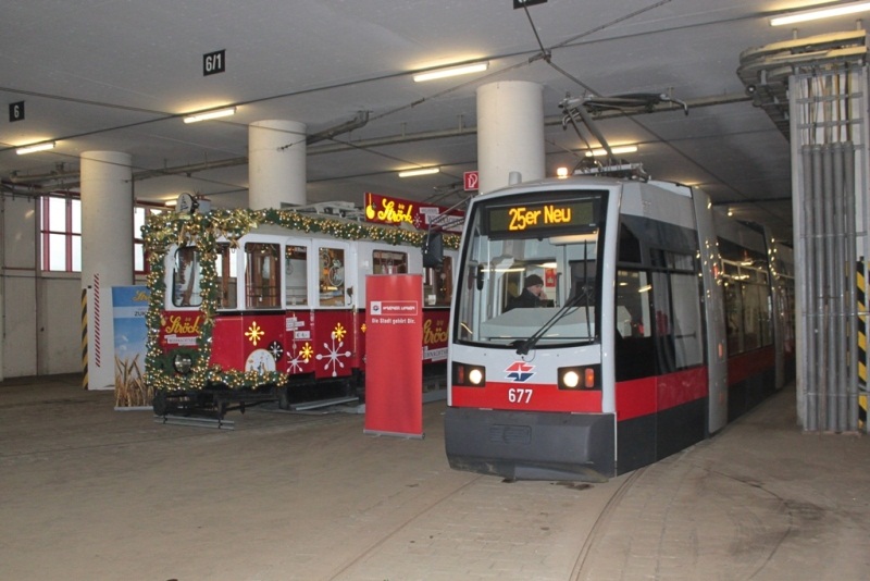 aus dem Bahnhof Kagran, gefolgt von der Ströck Weihnachtsbim.
