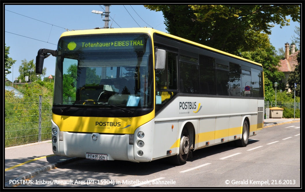 - PT-15904 in der Bahnzeile. Einige Mistelbacher Schulbusse haben Symbole (Kreis, Rechteck, Dreieck;