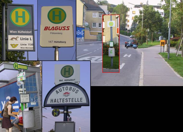 Anbei eine Collage mit verschiedenen Haltestellentafeln.