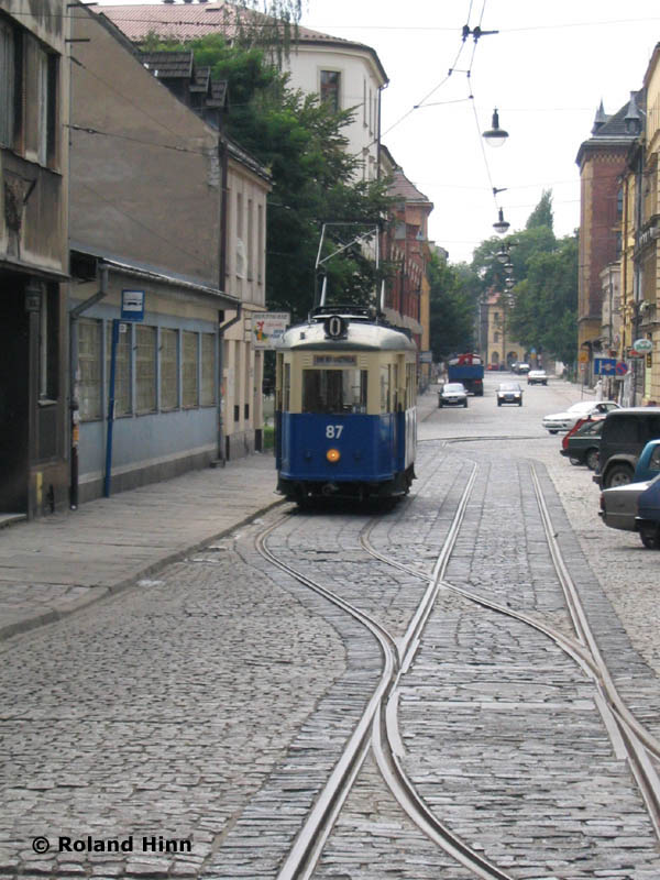 der Endstelle Wawrzynca. Die Pflasterung und die alten Häuser passen gut zum
