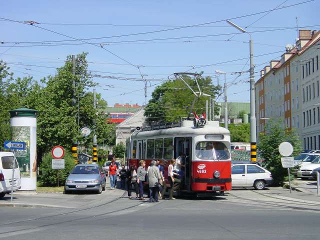 12: Ein 52er schmeißt sich um die Kurve hinter dem Bf. Rudolfsheim um dort