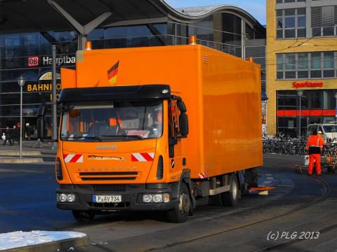 Als Beispiel dient hier der P-AV 734, der LKW der Gleisbautruppe des ViP Potsdam, den ich am 11.02.2013 am Hauptbahnhof traf.