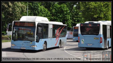 - PT-12186 ist ein Diesel-Citaro, der regelmäßig als Ersatzbus im Stadtverkehr St. Pölten zum