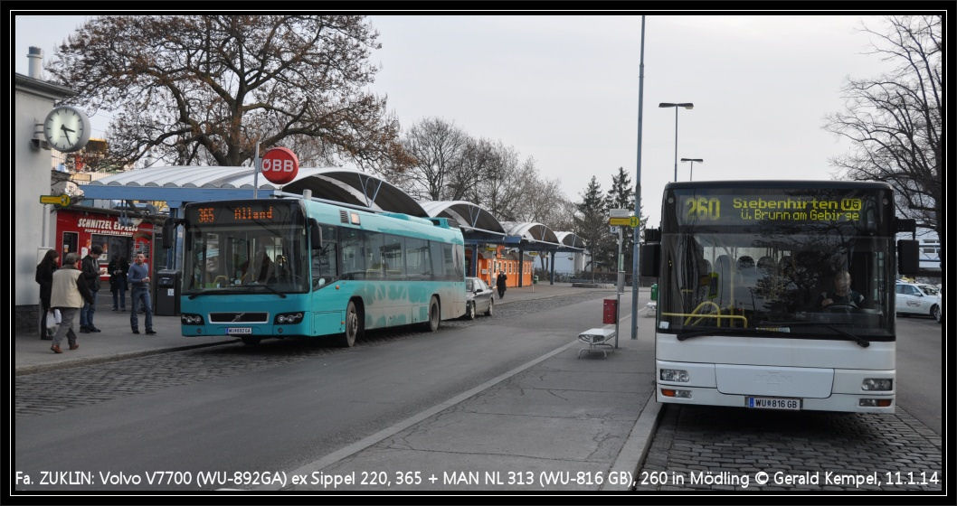 - Zusammentreffen zweier Zuklin-Busse am Mödlinger Bahnhof: Volvo Nr. 72 + MAN Nr. 84 (ex R1231) ohne FSD